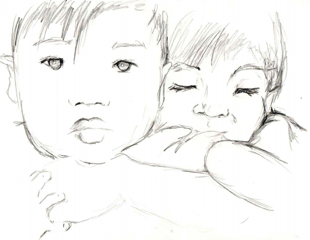 Here is a picture I drew of my eldest & middle son back when they were much littler people, so this post does not look bland, because it isn’t. IT’S AWESOME.