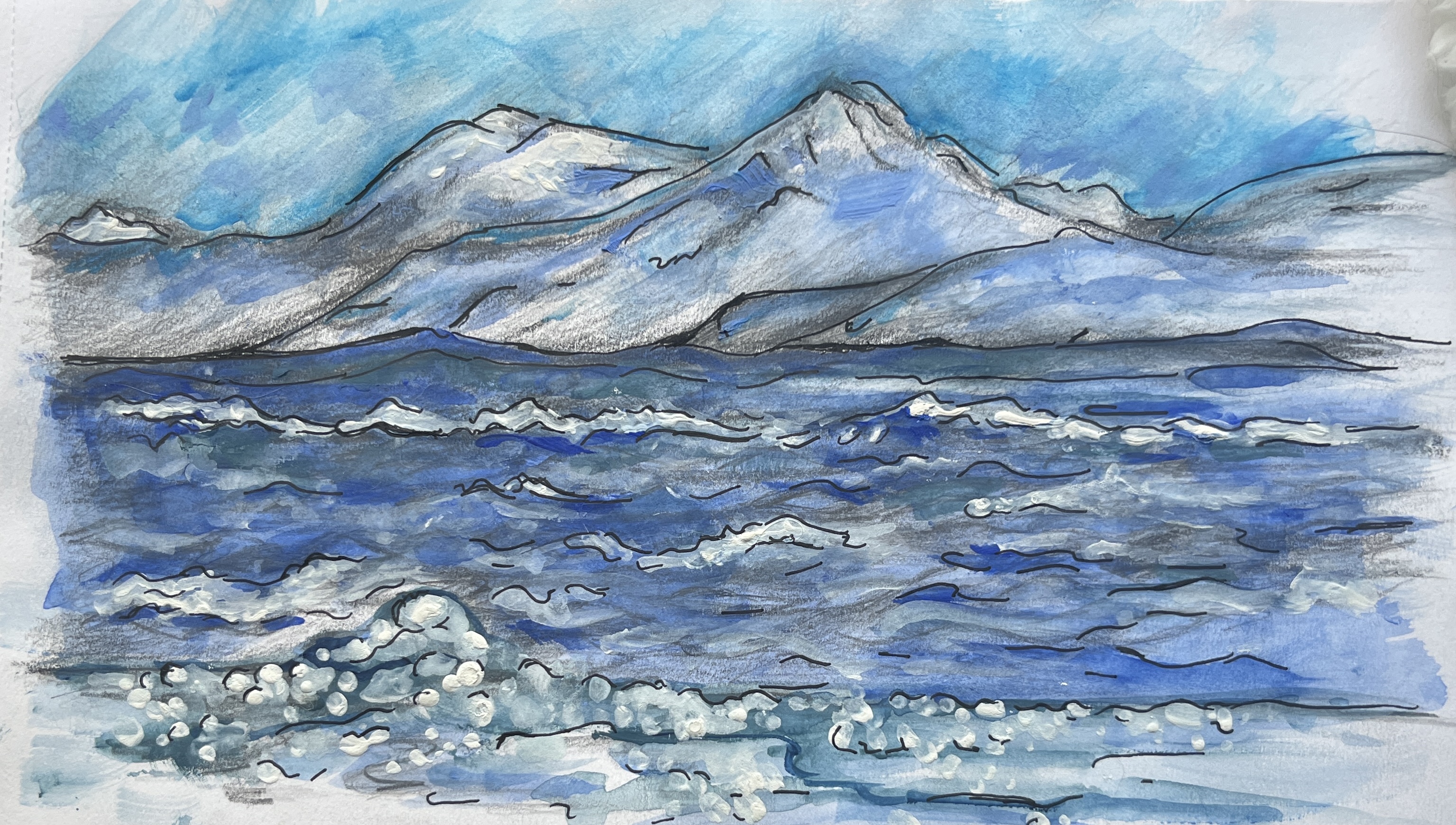 A small water color and ink, about 5 by 8 inches, by db mcneill (aka “buckheister”)
